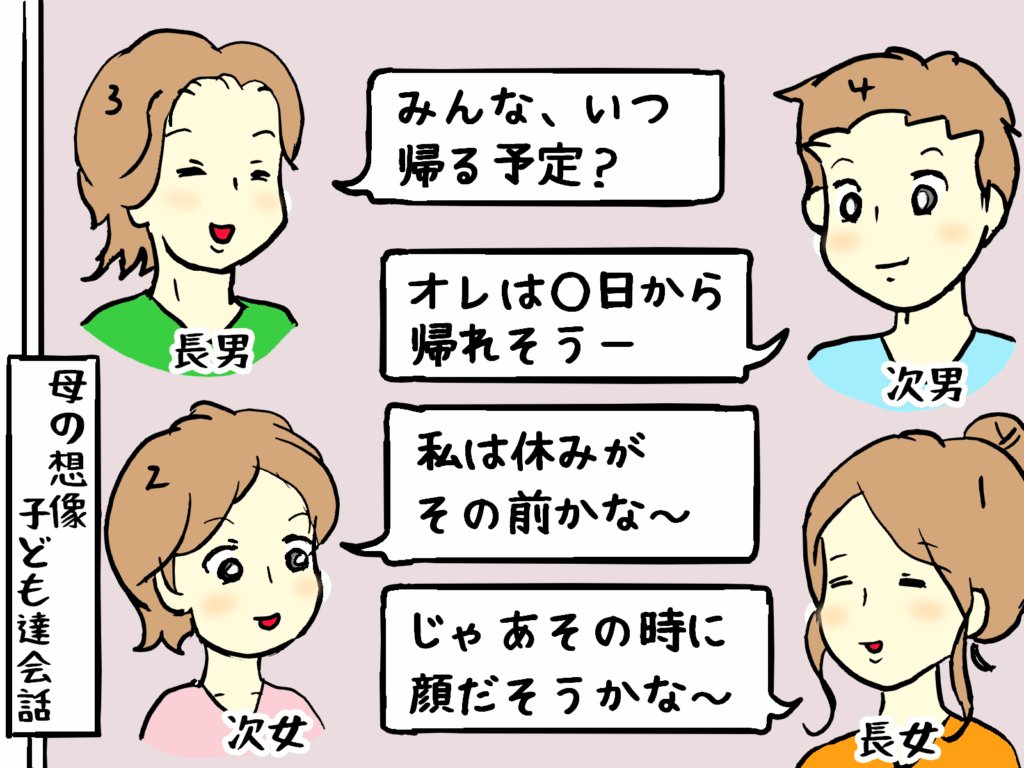 今年のお盆、夏シーズン。 子ども達だけのグループラインで連絡を取り合っていたそうな。
