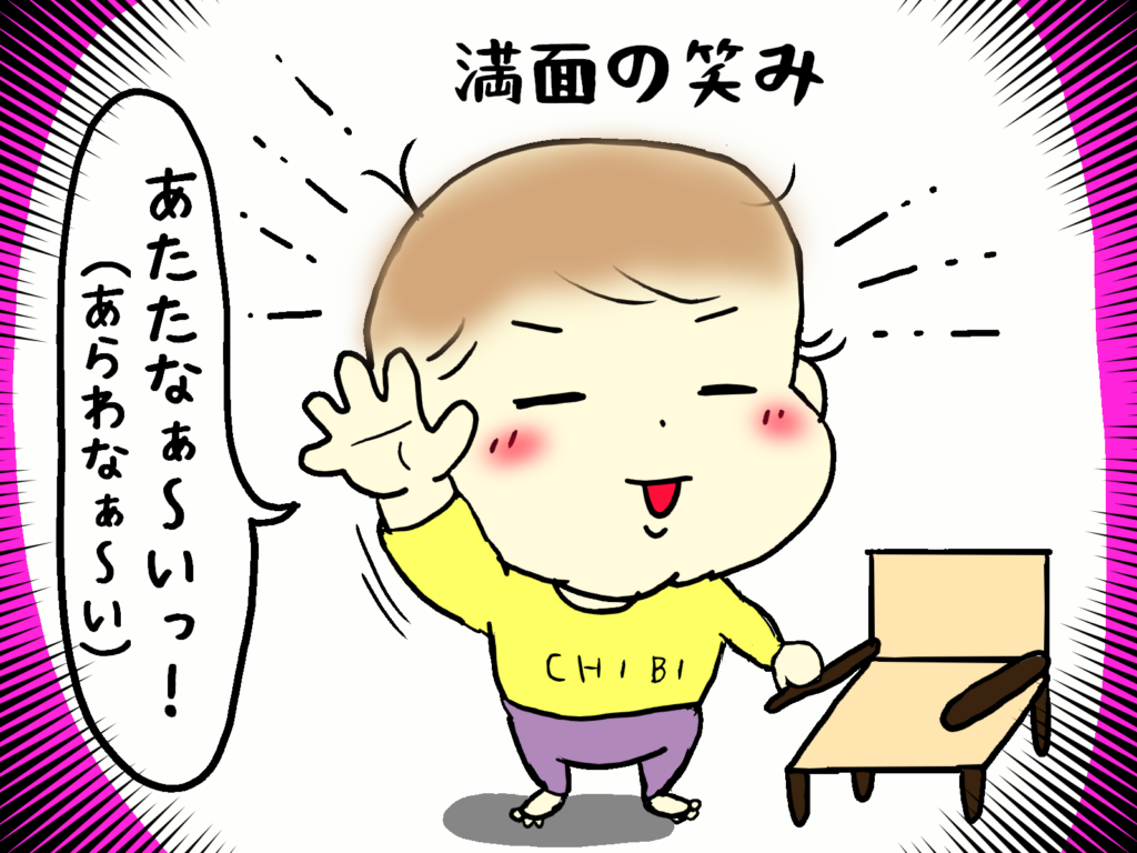 パパの問いに、思いっきり「あたたなぁ~いっ!」と答えたチビ太ん・・・