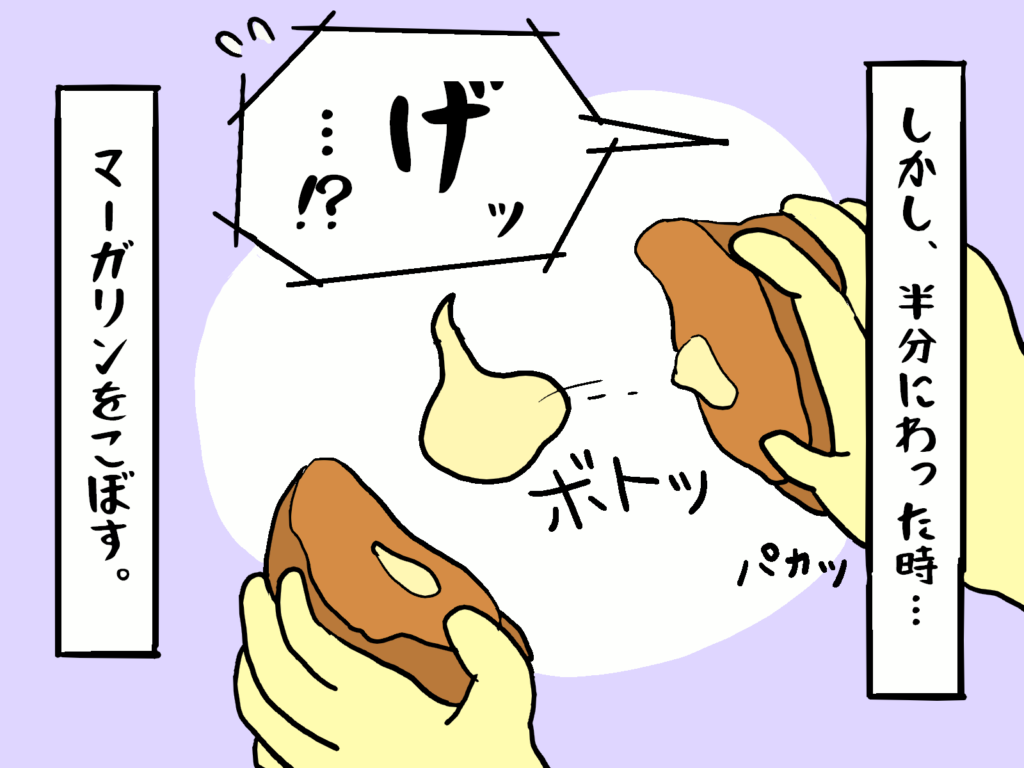ある日の朝の事、マーガリンが中に入っている美味しい美味しいパンを食べていた。